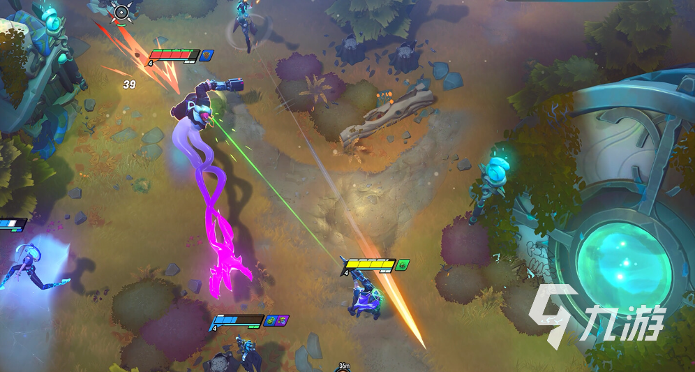 在生命条下方,还有一条蓝色能量条,即法力值,释放技能会消耗蓝量,停止施法4秒后可快速回蓝。这套机制更接近体力系统,需要合理分配技能使用节奏。为鼓励战斗和提升操作爽感,击倒敌方角色后,玩家会立刻回复部分生命值与全部法力值,并刷新位移技能;而当玩家团灭一个敌方小队时,更会获得所有技能的完全刷新,这一设计让高光时刻更加频繁,也让个人操作更具上限。